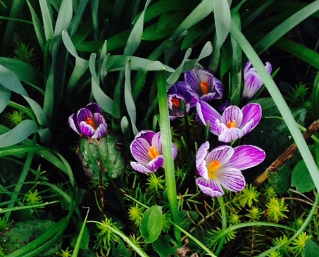 Paul in our reading today talks about how creation waits with eager longing for the revealing of the children of God, and I think of the crocuses pushing their way up through the remains of winter. Spring is near. In the dry, dead leaves lying in the garden like discarded, yellowing newspaper pages these bright flowers have winked into being. They stare up at me, audacious and joyful. They have arrived, and in their gorgeous opulence they expect to be noticed. And who can deny them? Purple as rich and deep as velvet, a yellow so bright it seems to crack the air, the orange of flame and beach balls – everywhere I look my eye is surprised and delighted.